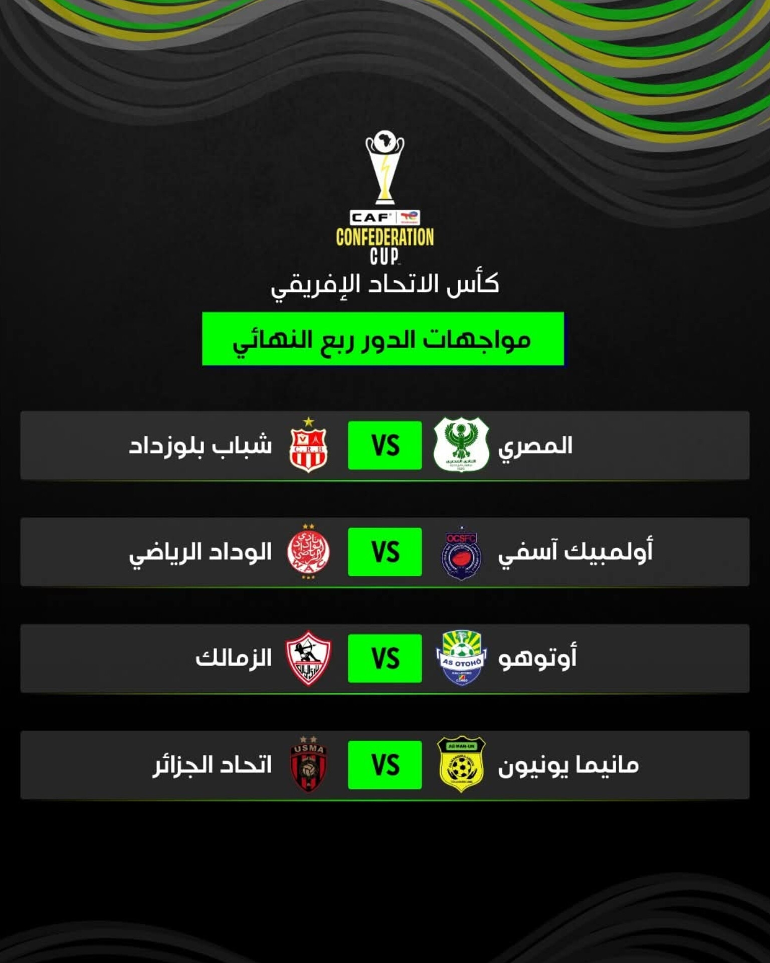 الترجي التونسي يواجه الأهلي المصري في ربع نهائي رابطة الأبطال واتحاد الجزائر  ضد مانييما الكونغولي في كأس الكونفدرالية