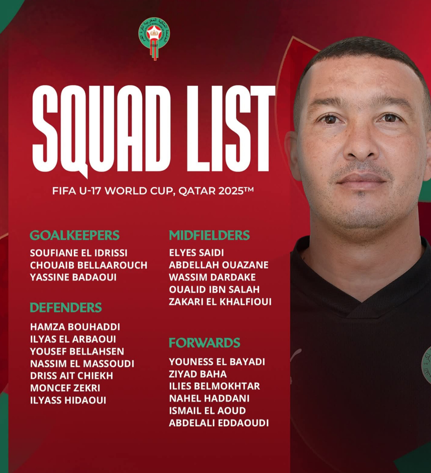 القائمة الرسمية للمنتخب المغربي تحت 17 سنة لكأس العالم قطر  2025