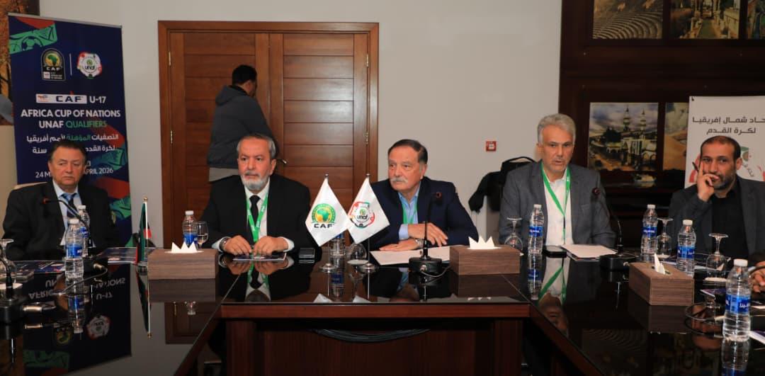 انعقد يوم الاثنين 23 مارس 2026 بمدينة بنغازي الاجتماع الفني لبطولة اتحاد شمال افريقيا لكرة القدم المؤهلة الى نهائيات كاس الأمم الافريقية تحت 17 عاما برئاسة السيد عبد الحكيم الشلماني عضو المكتب التنفيذي للاتحاد الافريقي لكرة القدم ورئيس لجنة التحكيم باتحاد شمال افريقيا وحضور السادة علي فتيتة وكيل وزارة الرياضة بالحكومة الليبية وفوزي جعودة نائب رئيس الاتحاد الليبي لكرة القدم ورضا كريم الكاتب العام المساعد لاتحاد شمال افريقيا.