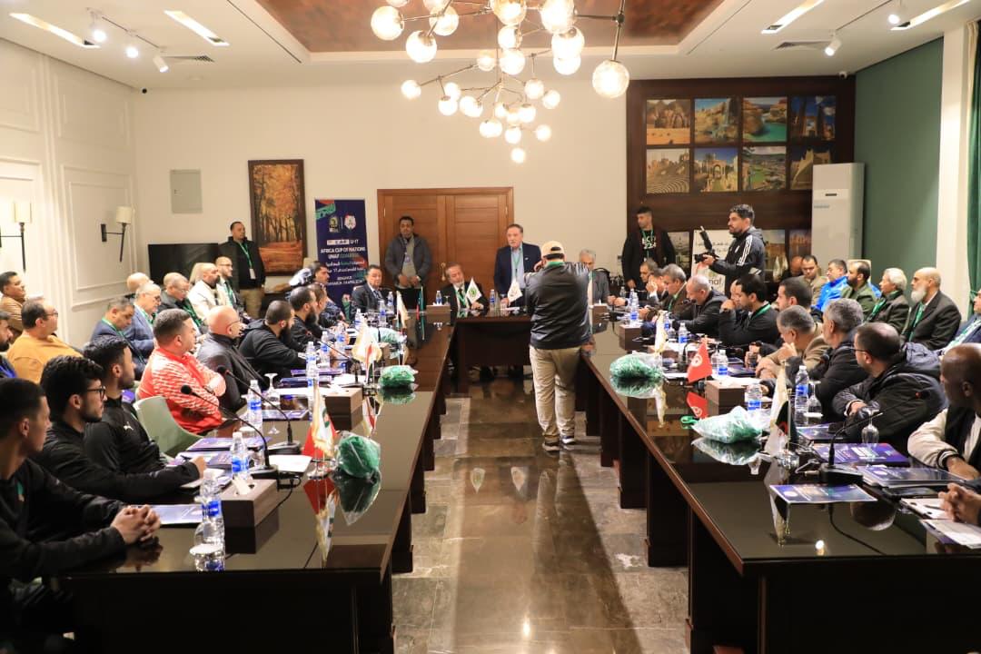 وتوجه السيد عبد الحكيم الشلماني لدى افتتاحه الاجتماع بخالص عبارات الشكر لوزارة الرياضة بالحكومة الليبية والاتحاد الليبي لكرة القدم على المجهودات الكبيرة في سبيل تامين افضل ظروف النجاح للبطولة وتوفير كافة أسباب الراحة للمنتخبات المشاركة مبلغا السادة الحضور تحيات المهندس هاني ابو ريدة رئيس اتحاد شمال افريقيا لكرة القدم وكافة السادة أعضاء المكتب التنفيذي للاتحاد.