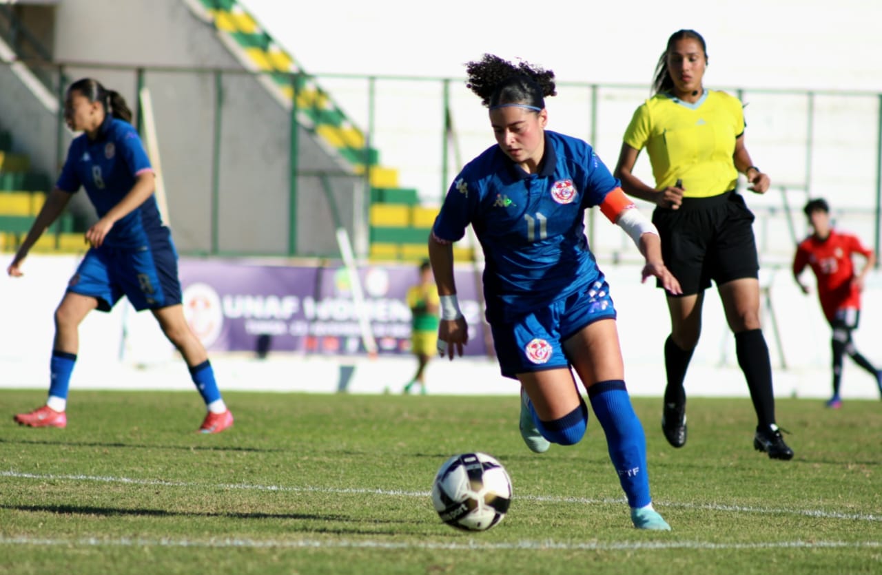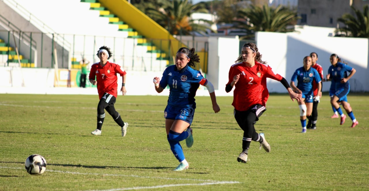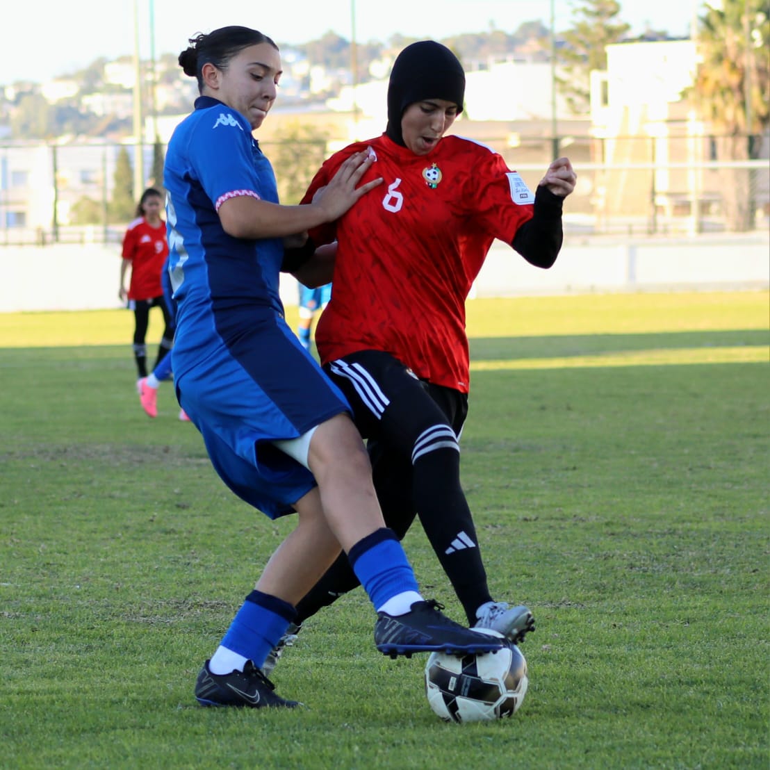 وفي ملعب عبد العزيز الشتيوي بالمرسى وفي إطار منافسات المجموعة الأولى، حقق المنتخب التونسي فوزا عريضا على نظيره الليبي 12-صفر بامضاء رنيم عجرود التي سجلت هاتريك في الدقائق 7 و9 و27 وسلمى المرزوقي في الدقيقة 13 ومريم البرهومي في الدقيقة 20 وياسمين بن كعبية في الدقيقة 31 و داليا نور في الدقيقة 43 من ضربة جزاء ويلدز بحوري في الدقيقة 45 وليليا بالحاج جراد في الدقيقة 50 وياسمين خلف الله في الدقيقة 60 وتسنيم الزرلي في الدقيقة 77 ونادين عبداوي في الدقيقة 79.