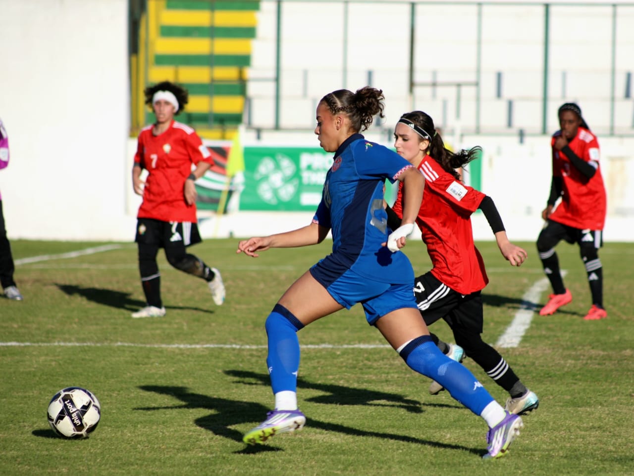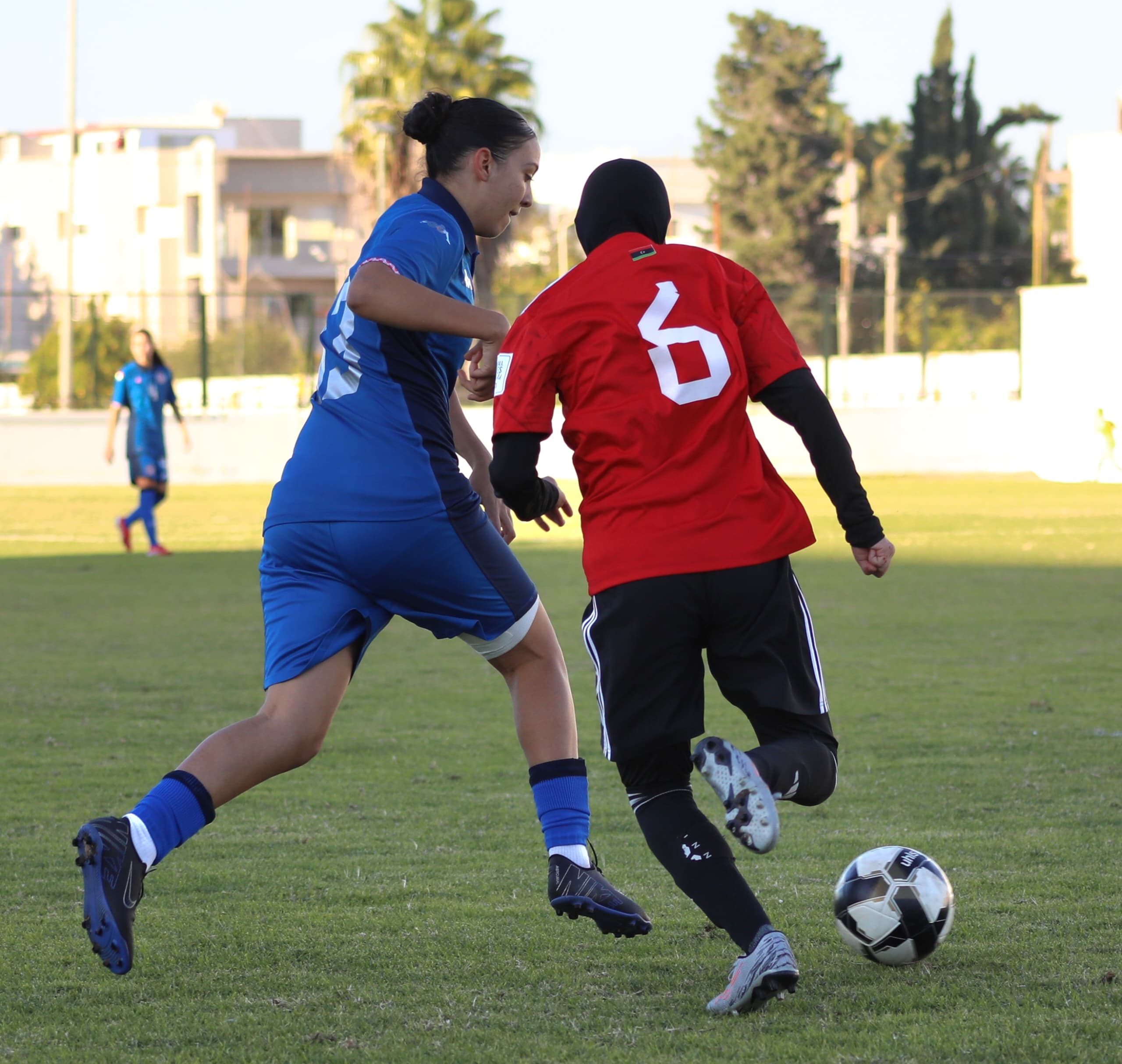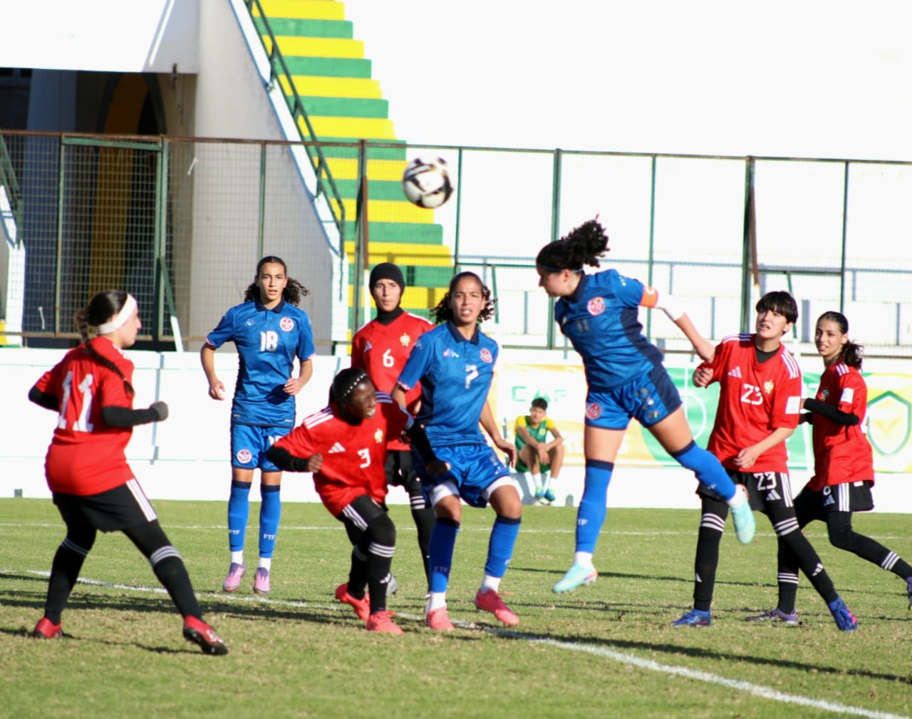 وفي ملعب عبد العزيز الشتيوي بالمرسى وفي إطار منافسات المجموعة الأولى، حقق المنتخب التونسي فوزا عريضا على نظيره الليبي 12-صفر بامضاء رنيم عجرود التي سجلت هاتريك في الدقائق 7 و9 و27 وسلمى المرزوقي في الدقيقة 13 ومريم البرهومي في الدقيقة 20 وياسمين بن كعبية في الدقيقة 31 و داليا نور في الدقيقة 43 من ضربة جزاء ويلدز بحوري في الدقيقة 45 وليليا بالحاج جراد في الدقيقة 50 وياسمين خلف الله في الدقيقة 60 وتسنيم الزرلي في الدقيقة 77 ونادين عبداوي في الدقيقة 79.
