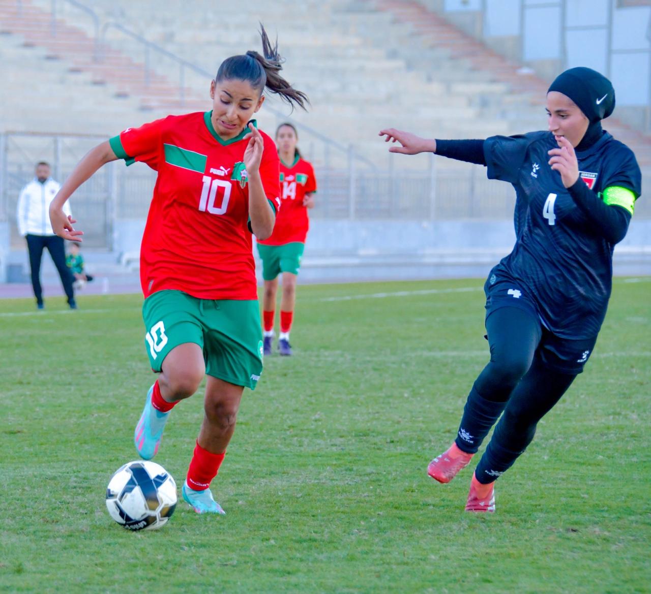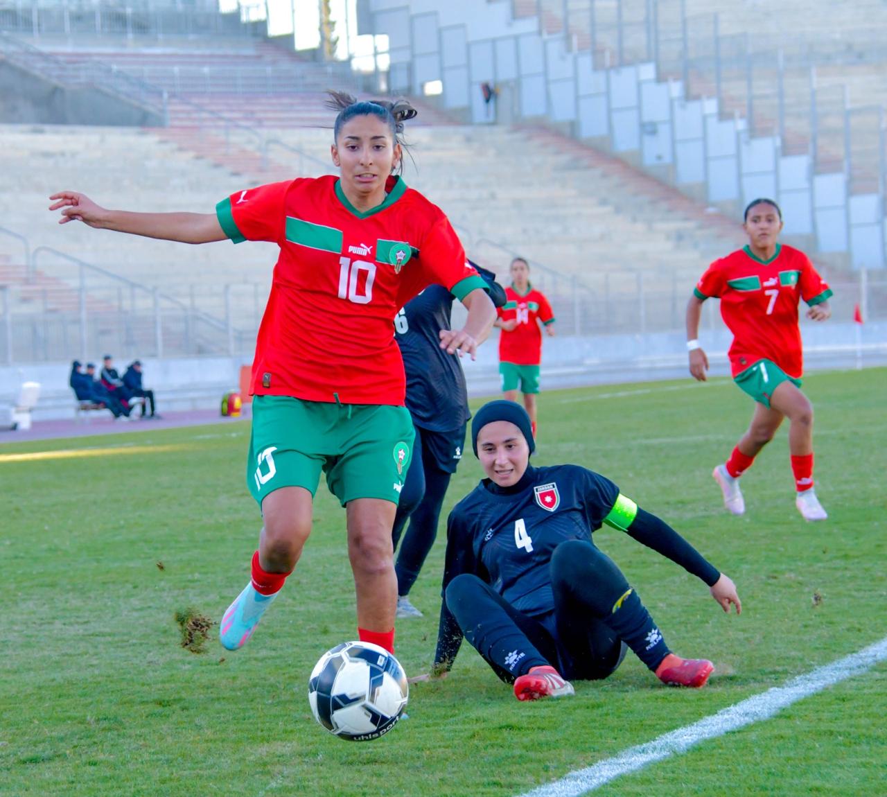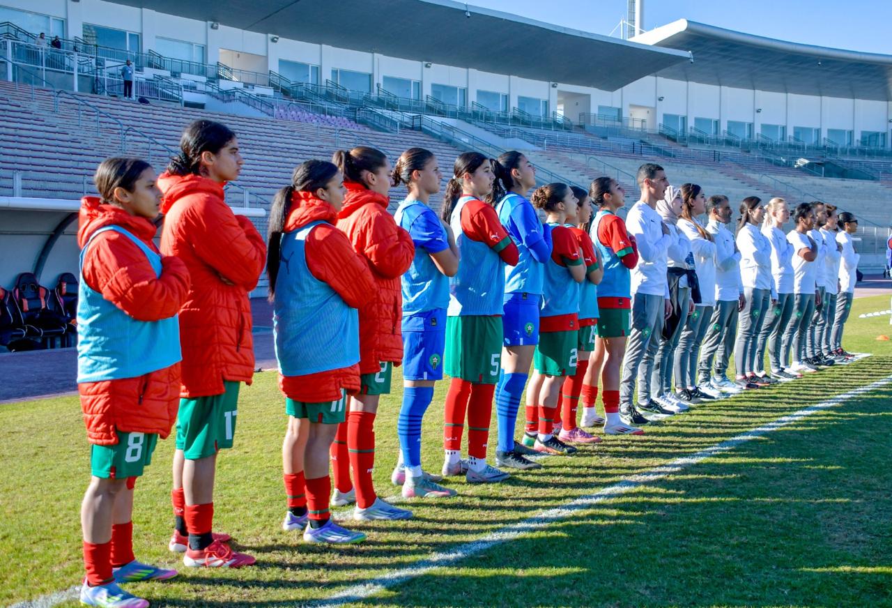 التحق المنتخب المغربي بنظيره المصري إلى نهائي دورة اتحاد شمال افريقيا لكرة القدم للمنتخبات النسائية لاقل من 20 سنة اثر فوزه على المنتخب الأردني بثلاثية نظيفة اليوم الاحد بالملعب الاولمبي بسوسة لحساب الجولة الثالثة والأخيرة من منافسات المجموعة الثانية.