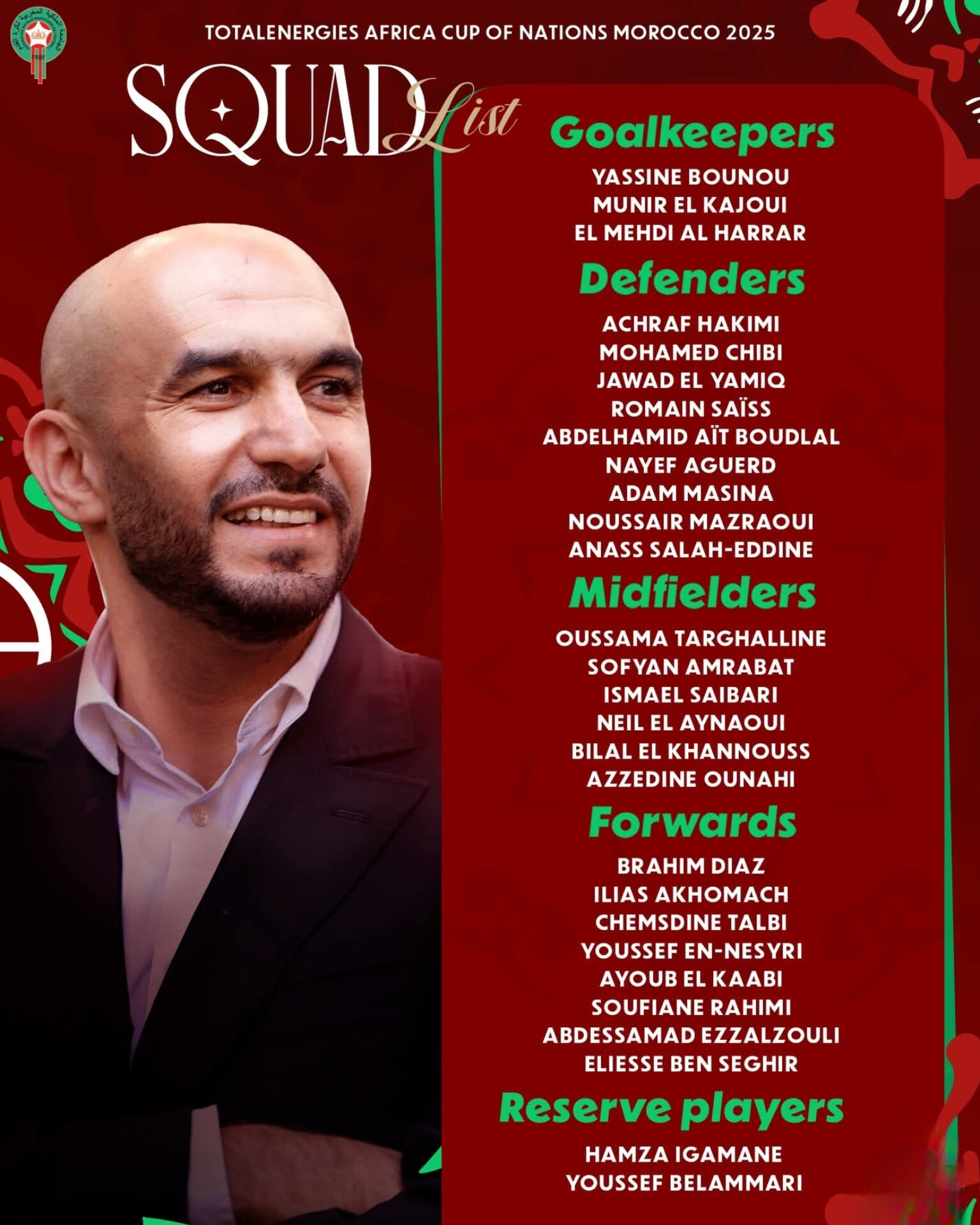 أشرف حكيمي، محمد الشيبي، جواد الياميق، رومان سايس، عبد الحميد آيت بودلال، نايف أكرد، آدم ماسينا، نصير مزراوي وأنس صلاح الدين.