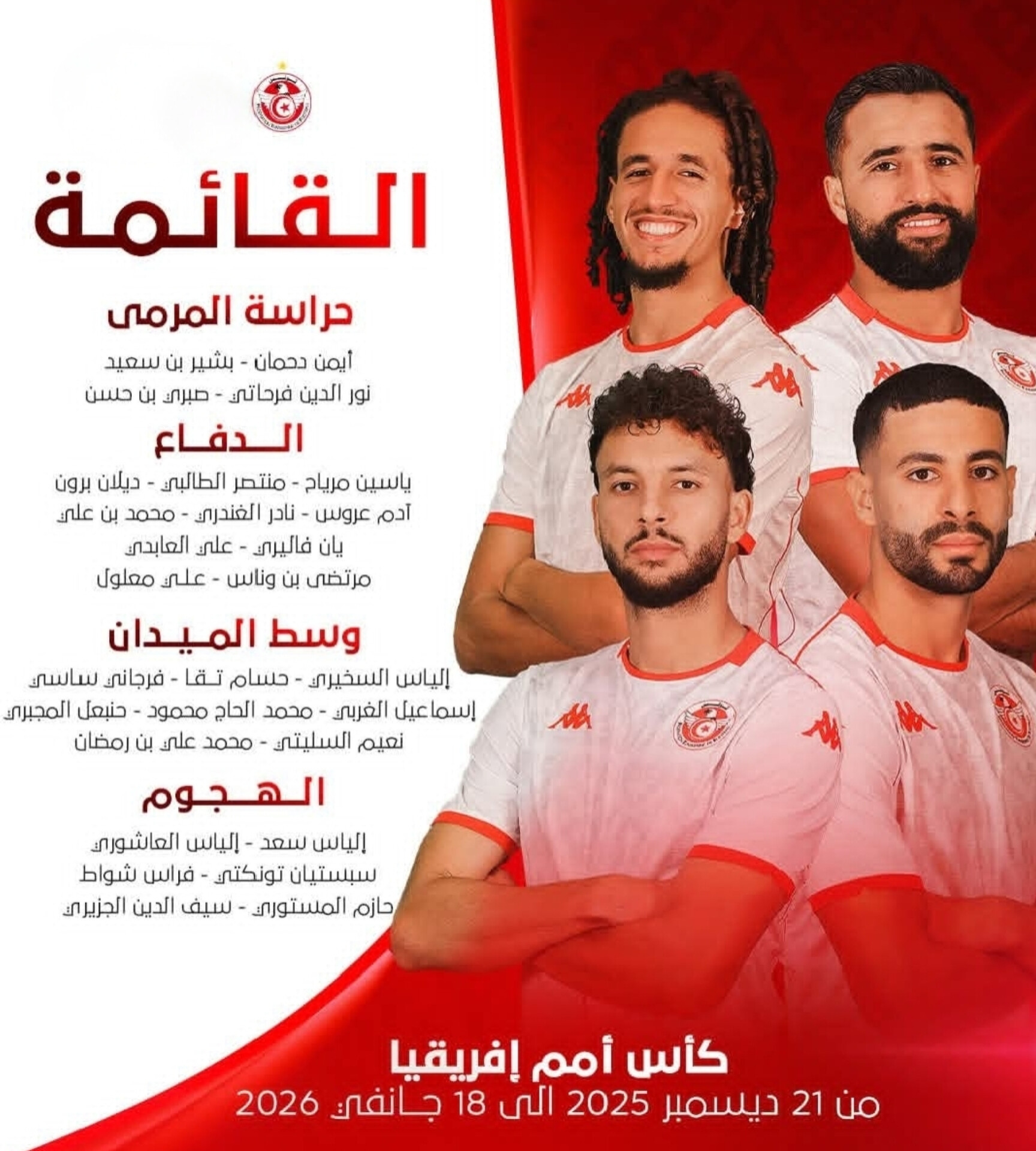 ياسين مرياح – منتصر الطالبي – ديلان برون – آدم عروس – نادر الغندري – محمد بن علي – يان فاليري – على العابدي – مرتضى بن وناس – على معلول.