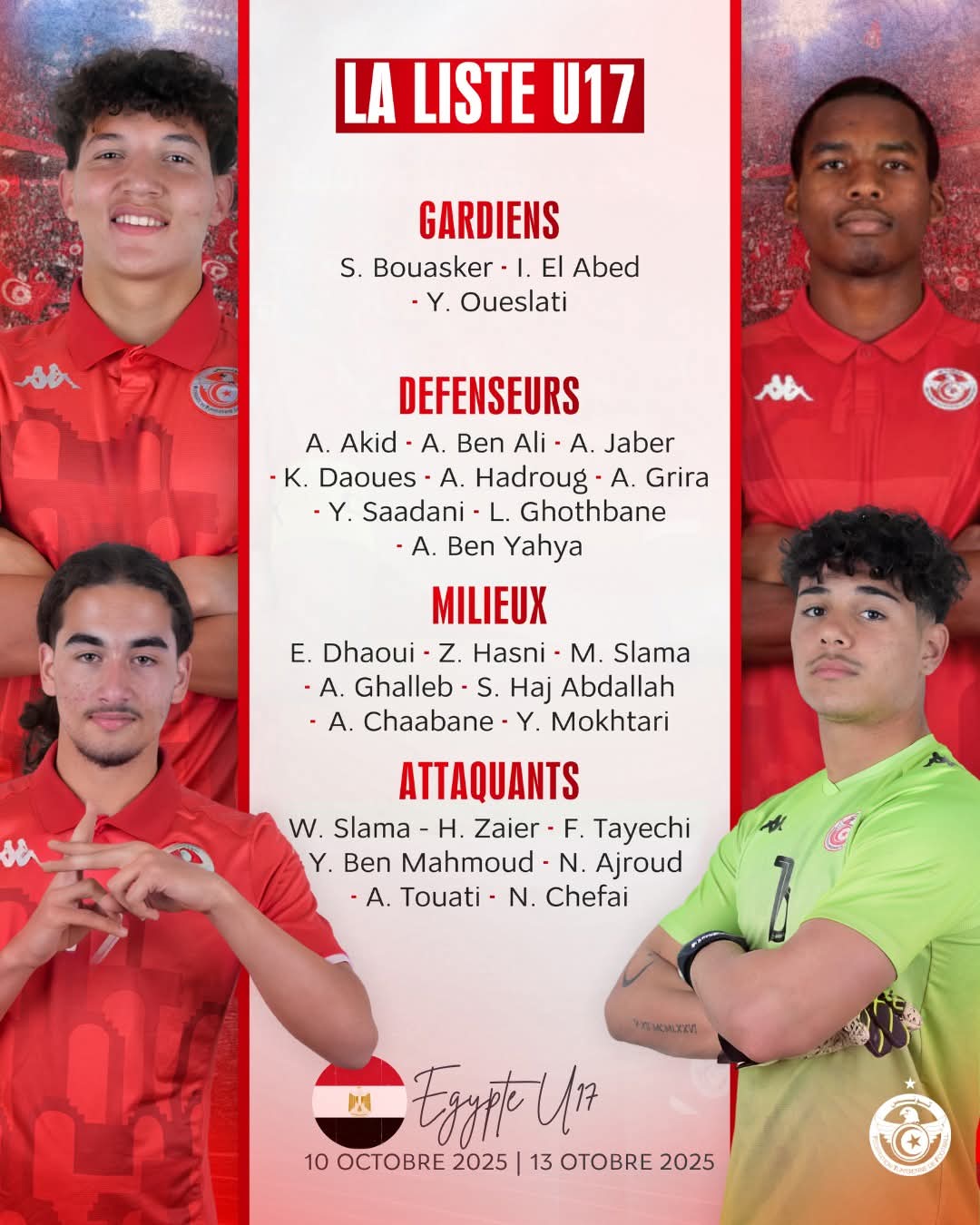 فيما يلي قائمة المنتخب التونسي تحت 17 سنة