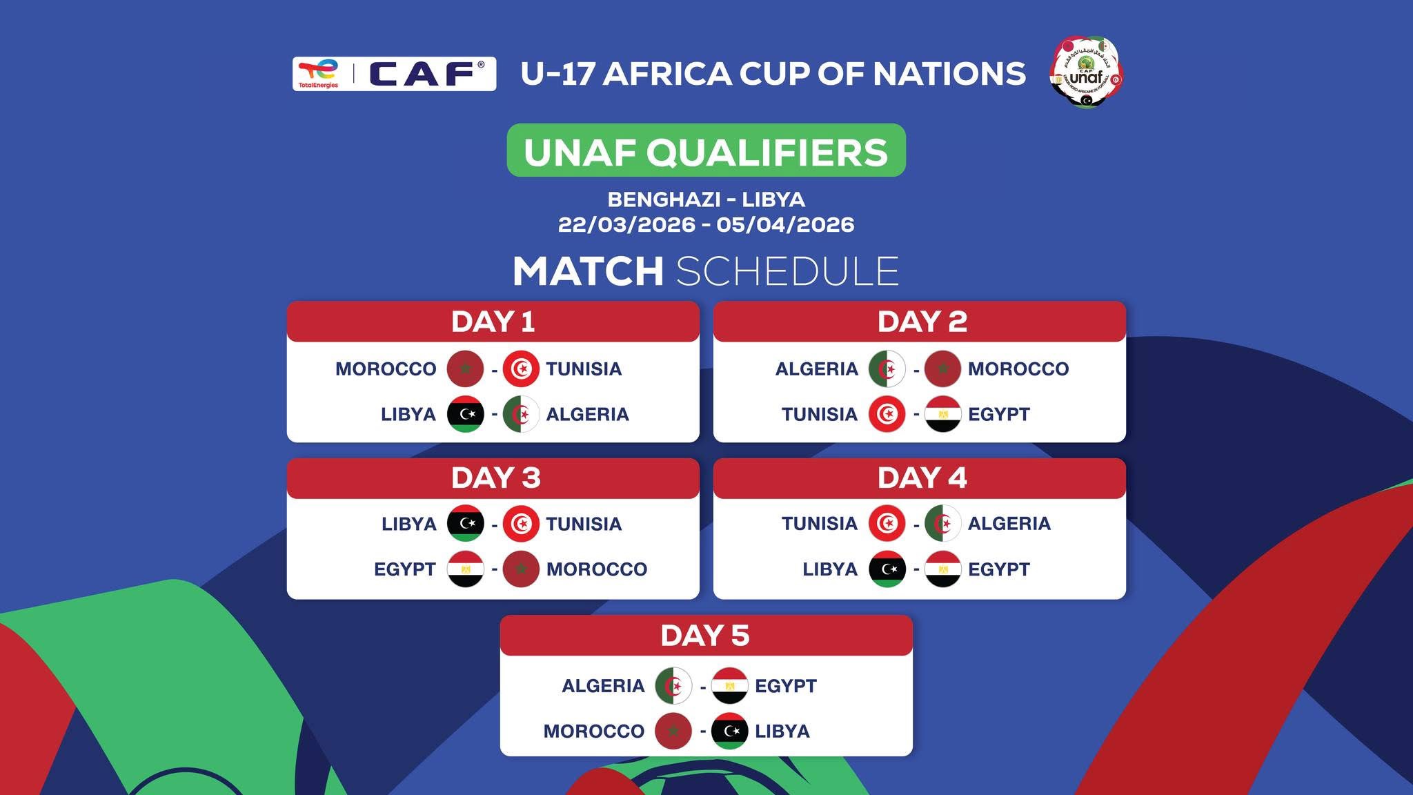 نتائج قرعة دورة تصفيات إتحاد شمال إفريقيا لكرة القدم المؤهلة لنهائيات كأس أمم أفريقيا تحت 17 سنة