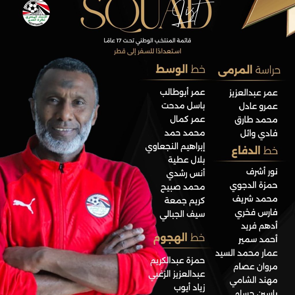 فيما يلي قائمة لاعبي المنتخب المصري تحت 17 عاما المعنية بالسفر الي قطر إستعدادا للمشاركة في كاس العالم لأقل من 17 سنة المقرر في قطر من 3 إلى 27 نوفمبر 2027